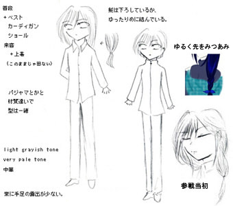 ・女性には特に親切。男性には普通。 ・第一期以降の知り合いには、略称のみ名乗る。 ・身体的な特徴(邪視・不老)などを他者(特に第一期以降)に話すことは稀。 ・男性から性別を間違われても訂正しない事あり。 |