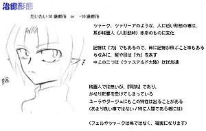 ・NPC(家族)と仲の良い人には割と親切。 ・女性や子供には親切だが、男性には親切じゃないかも。 ・第一期以降の知り合いには懐き難い…? ・第二期以降、自身の身体的特徴(精霊・妖魔)は秘密? ・外見の変化特徴についてはメモ詳細:性質の身体に記述。 |