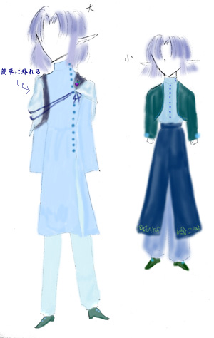 マファナのことを「ファナ」と呼ぶのはダージュのみ だったが最近は他の方にも「ファナ」と呼んで頂いているようです。 今の所、蓮さんと水刃さんだけ?かな??(地陣PL水神さんPC浅葱さん宅の方) やや青みがかった深い緑の瞳に、明るい青の髪色。 くりっとした大きな瞳、上に少々反り返った長い耳が特徴。 人型時にも背中に羽根が生えている(出し入れ自由) なぜか元?(竜型)の姿になることを好まない。 丁寧な口調で話すが、言葉遣いはやっぱり微妙に変。 そして時々大人びた口調になる事もある。(保護者視点からダージュの事を話す時等) 結構誰でも信用し、ドジでお馬鹿なところあり、変に人見知りをする。 注意力散漫、方向音痴、腰が低い?、すぐ凹む泣く ダージュを慕い、自分の命すら主であるダージュのためなら惜しまない。 何かあったときには、主以外どうでもいいという考え方を持つ。 ⇒Click 主と主とある程度親しい人にだけ、治癒がおこなえる(あと自分) 他にもいろいろできるらしいが、魔力等はたいした事は無い。力は強く、体力もある。 実は変化能力は低いので、人型は155cmと188cmのに形態にしかなれない。 性格も微妙に変わるらしい…大きい方が冷静に動ける。 小さい方は感情がはっきり出て結構よく泣く(申し訳ない、とか) ダージュを主として自分より上として扱うが、元々友人である為に時々同格(友人)として扱う。 またダージュが唯一正式な主従相互契約をした召喚獣でもある。 その為に『主』からの命令に逆らうことができない。 |