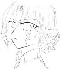 ダージュとの契約印→頬の痣の色をダージュの髪の色に近い色にしてる。 この痣は、ケイルもセフィルも元々持っているもの。 自分の特徴ある姿が目立つので、狩られるのが怖いらしく、ウァスアルドでは人の姿を借りて行動している。 その姿でも身長や性別は変わらない(例:男版ダージュ) 外見以外はセフィルのまま、声も男の声。双子の弟か兄が居たらこんな感じ?という雰囲気になる。 姿だけ写しているので、性別は男のまま。姿をうつしとった相手が女性でも、姿は女ではない。 臆病というか、何かと情けない。オドオド、そしてドジ、凄いドジというどうしようもない才能を持つ。 器用さなどは全てケイルに持っていかれたらしい。 丁寧なんだか何なんだか変な喋り方。丁寧にし損ねてる?舌をよく噛む。 バカ鳥、阿呆、間抜け、物忘れ酷い。 |