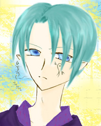 人1/2、精霊1/2の割合。 緑に近い明るい青色の髪と透き通った蒼い瞳をもつ。 背に羽は無く、痣のように羽の跡が残っているのみ。羽は出そうと思えば出せる、程度。 精霊力を行使する際には、その跡が濃くなる。 左頬、左上腕部にある刺青は文様士の刺青。文様士見習。 左の小指の真下、手首の付け根のあたりにも小さな痣がある。 手首の痣は、杖の発動術式。体内埋め込み式の杖を使用。 ちなみに、製作者はカンツァーク。 ツァリーア達とは同郷の同族。 生来の思いこみの激しさから、ダージュを男だと思っていた。 (大祭の時期に力の低下で眠りにつき、ダージュとの接触が少なかった所為でもある) 性格は明るく、裏表の無い素直な性格。 非常に真面目で、物事に白黒をハッキリとつけたがる。 多少僻みっぽく、ツァリーアやダージュに対しコンプレックスを抱いている。 自分の精神的な弱さが嫌いで、その事を他者に突つかれると頭に血が上ってしまう。 冷静に物事を対処することが苦手。 元々、精霊人としての能力は、然程高いほうではない。 精霊人としての変化(成長)で、風の精霊に対する影響力は低下した。 【ある事件】の時に、事件そのものに遭遇、重症を負うが奇蹟的に助かる。 その場に居ながら何もで居なかった自分と、その場に駆けつけ、多くの者を救った者。 何もしなかった者(実は事情を知らず生死の境をさ迷っていた)、失った家族や友人、想い人。 形にならない想いや感情を持て余し、未だに独りで悩みつづけている。 その辺の感情を、上手くレイシャに操られ、結果として友人達に迷惑をかけたことを、悔やんでいる。 |