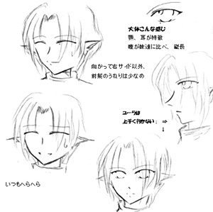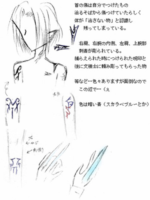 ++その他++ 癖:放浪 特徴:いつもへらへらと笑っている。緊張感の欠片も無い。間延びした喋り方をする。一見無害。 外見:獣耳 外見:左眼の下に黒子がある。 外見:でっかい剣を持ってる。両手剣のようなものが生える。 居住:一応舞蘭邸三階 (最近居ない) // 実家の三階・マンション 職業:不明 武器:大剣 陣営:PCと同陣営。だった事も…。(現在は、自分が動きやすい、都合の良い陣営に属する) ++絵++ 〔顔・瞳・表情基本設定 //治癒形態〕 〔全身図〕 〔刺青、手の武器〕 ++PCとの出会い、関係++ 引き取られた子供と引き取られ先の子供。義理の兄と妹。PC曰く、年が上だから兄。 妹達からは『ユーラはユーラだから』と軽く見られている様に見える。 他人からみると、思わず眉を顰めたくなるような扱いを妹達から受けるが、本人はそれで構わないらしい。 文句も不平も言うのに、止めてもらおうとは思わないようだ。 ++第一期、第二期、第三期++ 自分が行方不明にさせた妹を探しにやってきて、共に行動していたダージュとはぐれる。(しかも着いてすぐ) はぐれていた間に自分の探していた人物もこの世界にいると知り、そのものを消す為にこの世界にいる。 戦争が開始する直前、ある人物と遭遇、交戦中。現在も戦時下の混乱に乗じてある人物を消そうと奔走中。 |