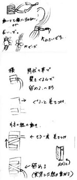 髪留め・チョーカー チョーカーはある2つの理由から、普段は絶対に外さない。 チョーカーは光沢のある布っぽいもの。 チョーカーにある模様は鈍い緑色。 金属の糸も編まれてます。厚さは季節に合わせて何種類かある。 身につけている理由は其々別にあり。つけている部分は首、左二の腕、左太もも。 太もも、二の腕のものは、首の物と違って少し分厚い。完全に金属製っぽい。断面はかまぼこ型。腕輪。 太ももや二の腕にある飾りは、チョーカーと同じ布に近い物も一応は持っている。 ⇒Click 髪留め紐 / 紐 / 紐・髪留め 革紐とビーズ(硝子・木製)で出来ている。 ベルトと同じ色の革紐。 ⇒Click ネックレス? 細長く、アクセサリーとしては変な位置に貴石のはまったチャーム付き。 本体、鎖は銀製。鎖の長さは、つけて前かがみになるとテーブルにつく程度の長さ。 5センチほどの長さの、側面角が丸みを帯びた四角い棒状。 上部には鎖を通す正方形の穴が側面に通っている。 上辺部分と表面上部に小さな石がはまっている。 ⇒Click ネックレス(参照:贈り物) 首につけてなくても、ベルト通しに結んでポケットに入れたりして持ち歩いてる。 ルイトが作ったもの。ある方とおそろい。 普段は主に服の下につけている。傷つける可能性がある場合は鞄や箱にしまってある。 ノートとメモ 勉強をするということでノートを購入。一緒に買ったメモは一回り小さめ。 それまでは余った紙などにメモしていた様子。 ⇒Click ショール 宿の女性達から誕生日に送られたもの。 月白色■をしているらしい。 夏場の防寒着などとして使っている。 冬用帽子:左下 宿の男性達から誕生日に送られたもの。 ふわふわの帽子に飾りと羽根がついている。 鞄:肩掛け鞄